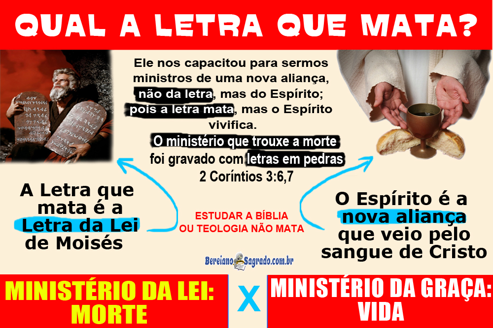 Entretanto, o que mata aqui, é a interpretação equivocada do texto. Pois, quem mata é a letra da Lei, não a letra da palavra de Deus, não o estudo da teologia.